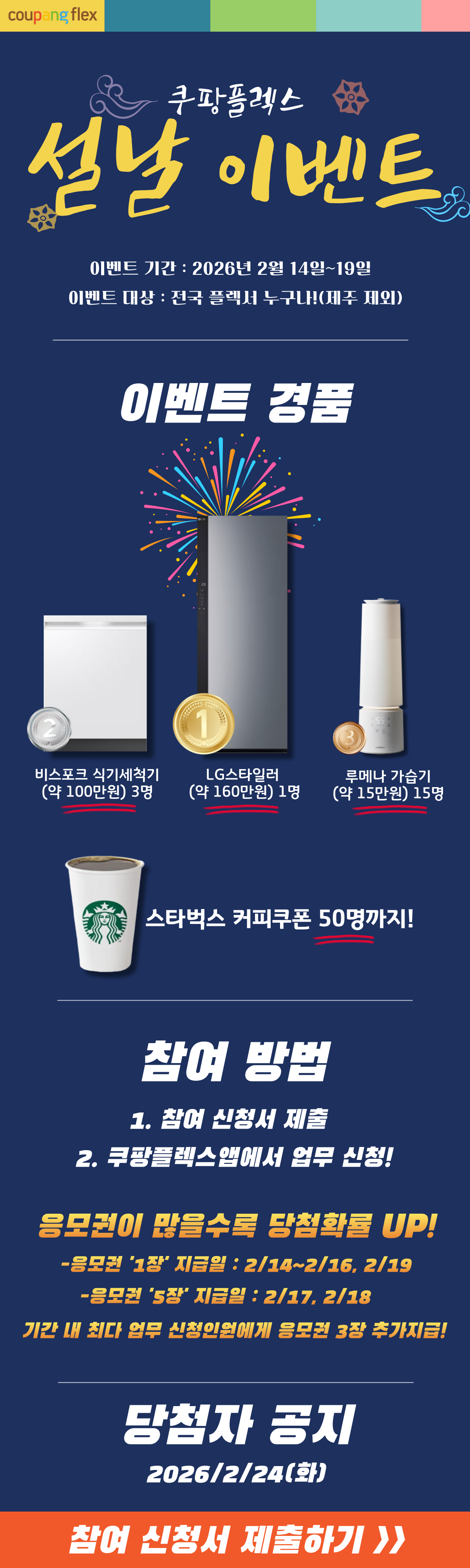 페이지 하단의 쿠팡플렉스 SNS 채널 접속 후 공지를 확인해 보시기 바랍니다.